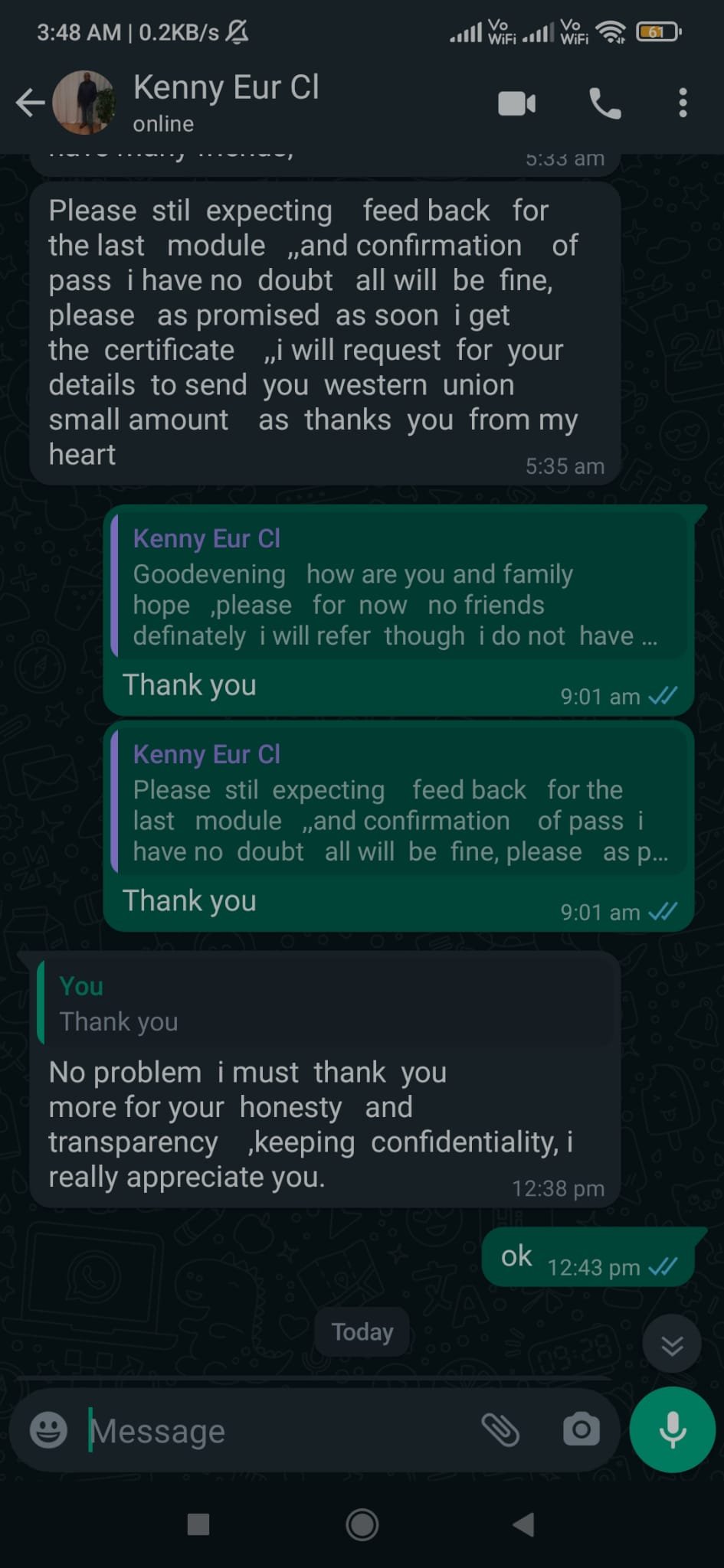 Real feedback from a PhD scholar after successful thesis submission.